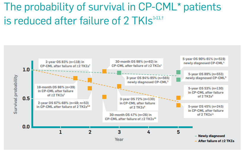 However, the perceived unmet need was low as there were four TKIs being used in CML namely Gleevec, Sprycel, Tasigna and Bosulif in 1st and 2nd line CML; with reasonable efficacy and safety outcomes. Also, testing for T315I mutation was not as common at the time of the launch.