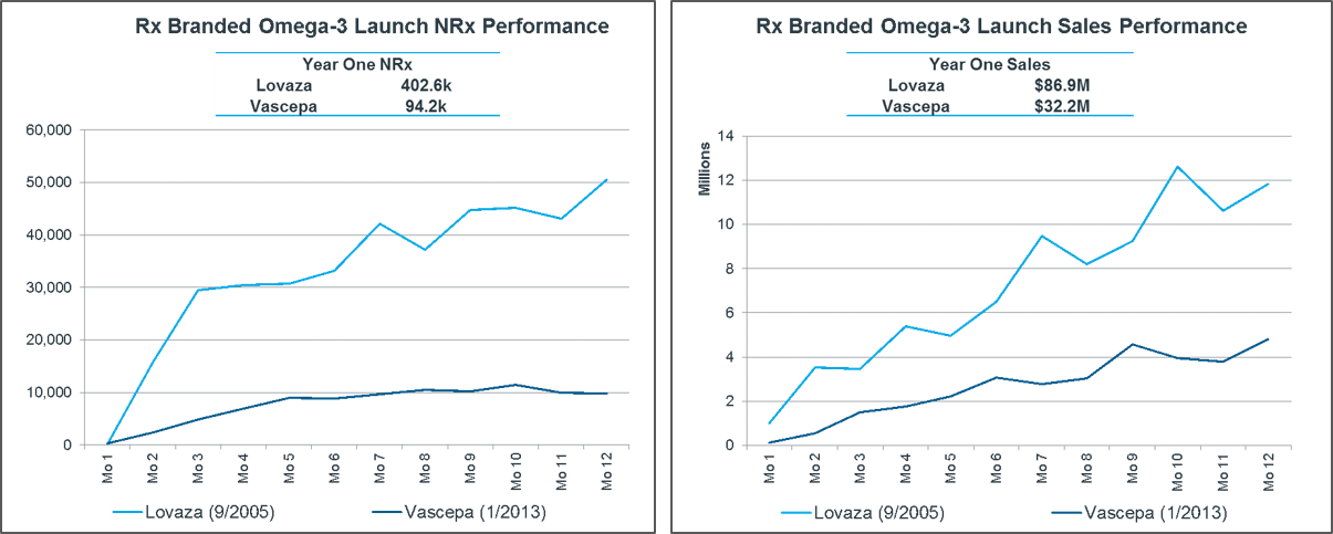 At the time of its launch, Vascepa was up against a marketed and branded prescription formulation of a blend of two omega-3 fatty acids, backed by big pharma. Other competitors included branded statins, the first of the generic statins, and over-the-counter omega-3 supplements.